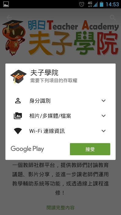3.點擊安裝「夫子學院」APP,完成安裝 (如圖7、8 畫面)