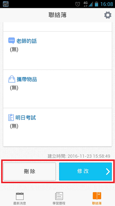 2.當天已有資訊的日期,可點擊下方「修改」進行編輯,或點擊「刪除」移除當日聯絡事項。(如圖10所示)