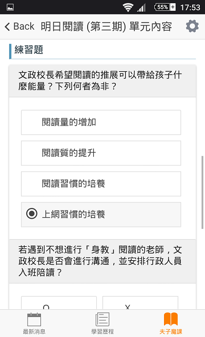 3.下方為影片練習題,點選答案後,點擊“提交答案”,需全對才算完成本影片練習題。
